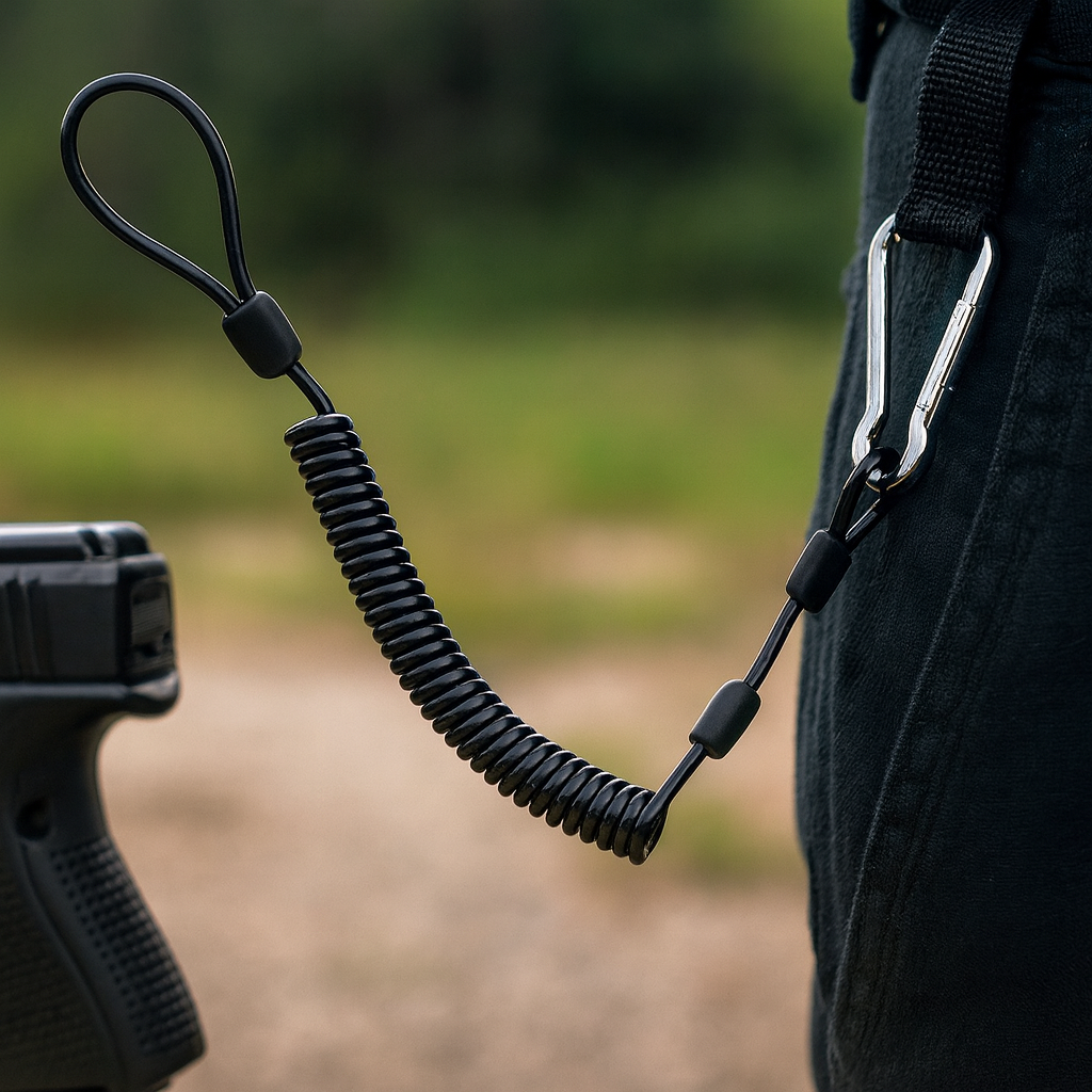 שרוך אבטחה / קפיץ אבטחה לאקדח רצועה מאבטחת לאקדחים ולפריטים נוספים בעל חיבור לרצועה. מונעת נפילה של חלקים או ציוד. מומלץ מאד לאבטחת הנשק ! בעל גמישות מקסימלית המאפשרת מוטת יד מירבית. מוצר מומלץ לכל נושא נשק ! שרוך אבטחה סלילי מאפשר נשיאה בטוחה של האקדח.