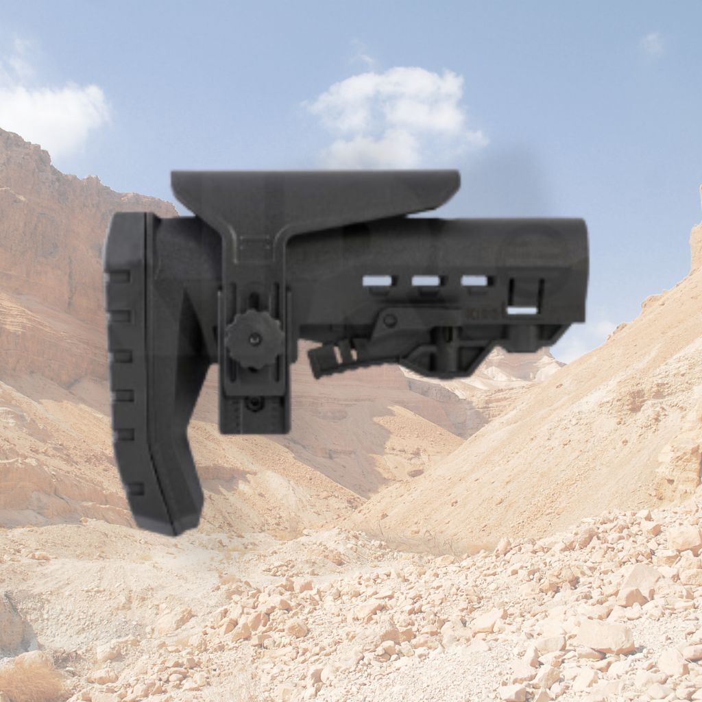 קת פולימרית איכותית לצינור MIL-SPEC, כוללת לחצן התאמה מהירה, תומך לחי מתכוונן, תושבת QD לחיבור רצועה, וכרית גומי עבה במיוחד המעניקה בלימת זעזועים מרבית ונוחות מוגברת בשימוש ממושך.